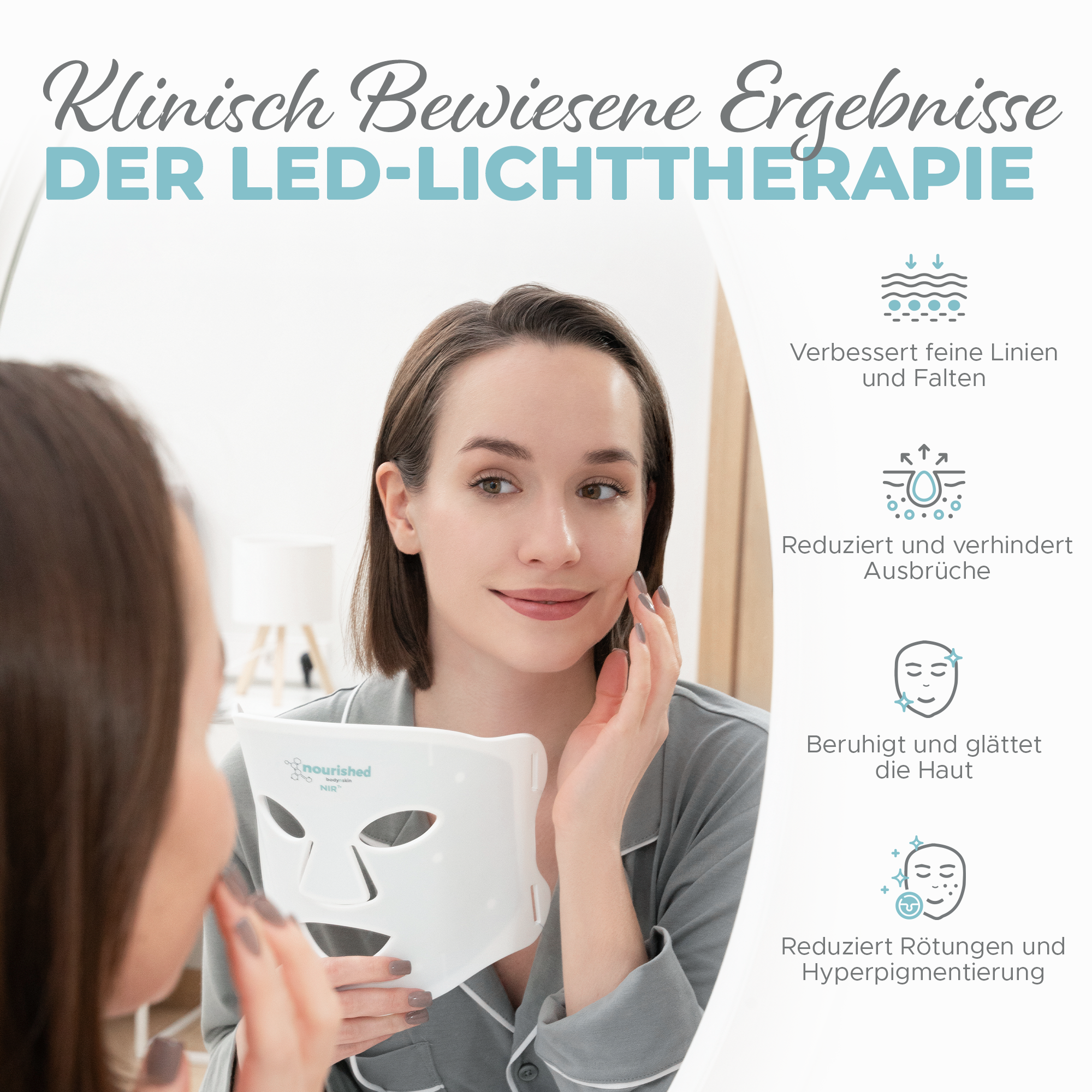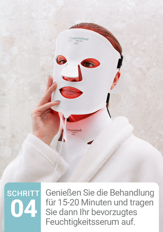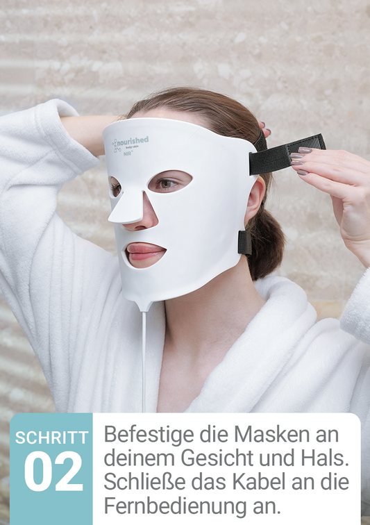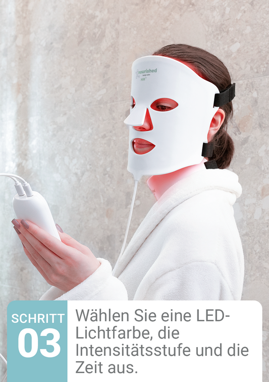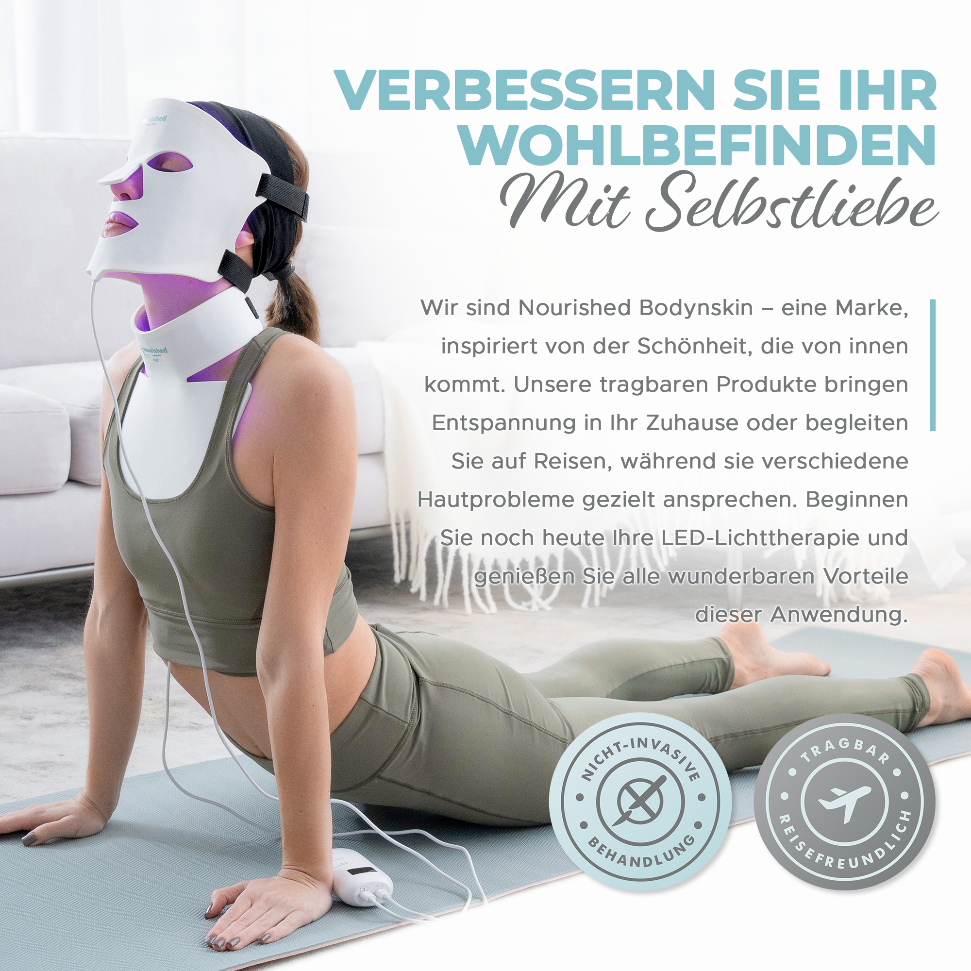 Die Nourished Bodynskin LED-Masken haben eine Bestrahlungsstärke von ca. 35 mW/cm² und gewährleisten so eine sichere und effektive Behandlung ohne Erhitzung oder unerwünschte Nebenwirkungen. Unsere LED-Masken sind für alle Hauttypen geeignet und bieten die kraftvolle Heilwirkung der LED-Lichttherapie ohne UV-Belastung.