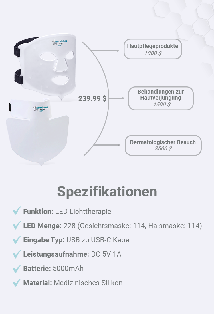 LED-Anzahl | 228 (Gesichtsmaske: 114, Halsmaske: 114) |