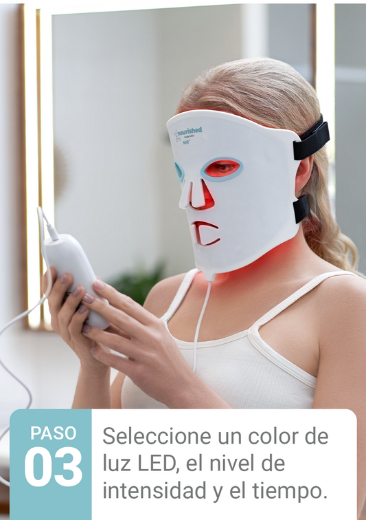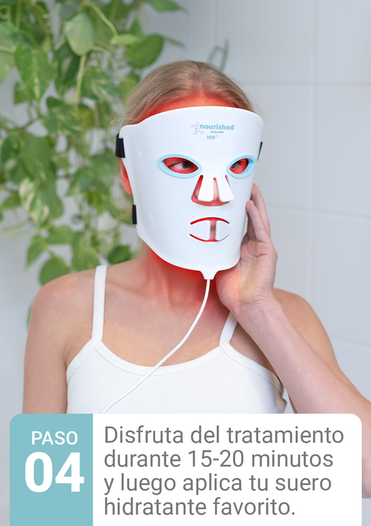 Las máscaras LED Nourished Bodynskin tienen una irradiancia de aproximadamente 35 mW/cm², lo que garantiza un tratamiento seguro y eficaz sin calor ni efectos secundarios. Nuestras máscaras LED son aptas para todo tipo de piel y ofrecen los potentes efectos curativos de la fototerapia LED sin exposición a rayos UV.