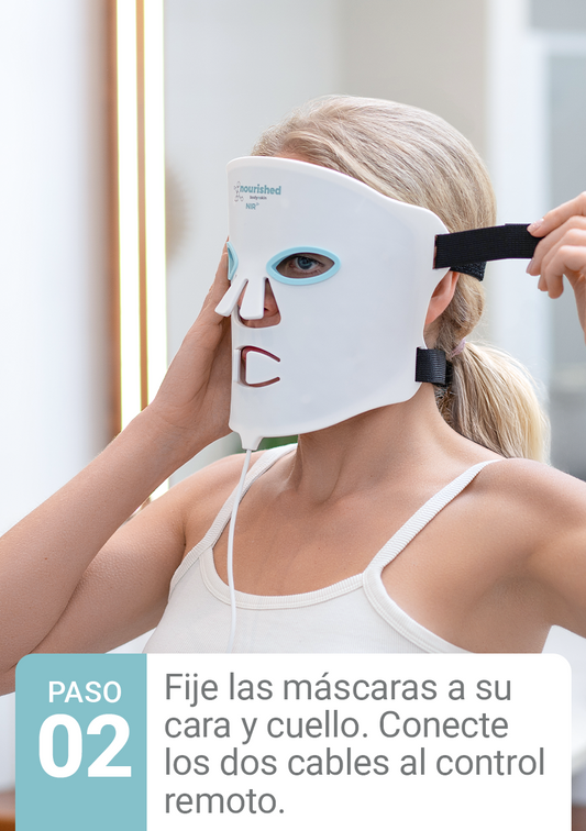Las máscaras LED Nourished Bodynskin tienen una irradiancia de aproximadamente 35 mW/cm², lo que garantiza un tratamiento seguro y eficaz sin calor ni efectos secundarios. Nuestras máscaras LED son aptas para todo tipo de piel y ofrecen los potentes efectos curativos de la fototerapia LED sin exposición a rayos UV.