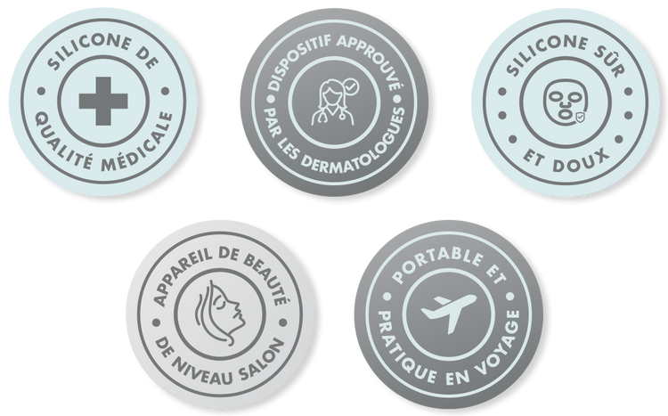• Lumière bleue (mode purifiant) : Purifie et clarifie la peau en ciblant les causes sous-jacentes des éruptions, aide à calmer l'inflammation et stabilise les glandes sébacées.