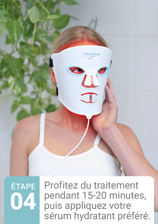 Les masques LED Nourished Bodynskin ont une valeur d'irradiance d'environ 35 mW/cm², garantissant un traitement sûr et efficace sans chauffage ni effets secondaires indésirables. Nos masques LED conviennent à tous les types de peau et offrent les puissants effets réparateurs de la thérapie par lumière LED sans exposition aux UV.
