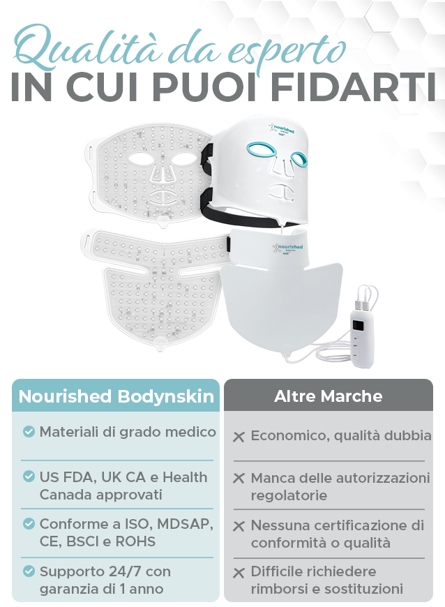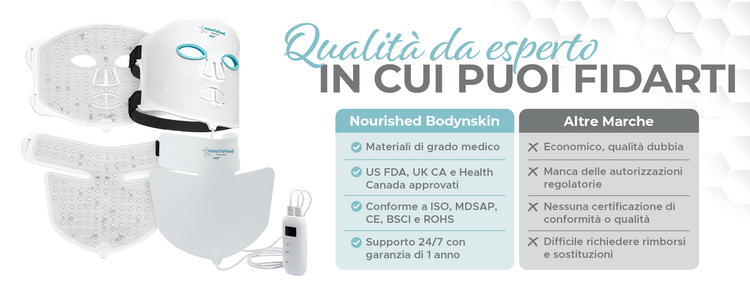 Modalità essenziali Rosso + NIR e Blu + NIR per una cura anti-acne, anti-età e dei tessuti profondi senza sforzo—ideale per principianti che vogliono semplicità.
