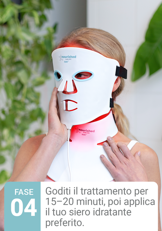 Le Maschere LED Nourished Bodynskin hanno un valore di irradianza di circa 35 mW/cm², garantendo un trattamento sicuro ed efficace senza riscaldamento o effetti collaterali indesiderati. Le nostre maschere LED sono adatte a tutti i tipi di pelle e offrono i potenti effetti curativi della terapia con luce LED senza esposizione ai raggi UV.