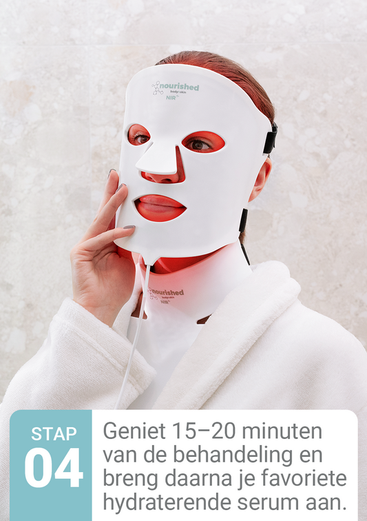 De Nourished Bodynskin LED-maskers hebben een irradiantiewaarde van ongeveer 35 mW/cm², wat zorgt voor een veilige en effectieve behandeling zonder verhitting of ongewenste bijwerkingen. Onze LED-maskers zijn geschikt voor alle huidtypes en bieden de krachtige helende effecten van LED-lichttherapie zonder blootstelling aan UV.