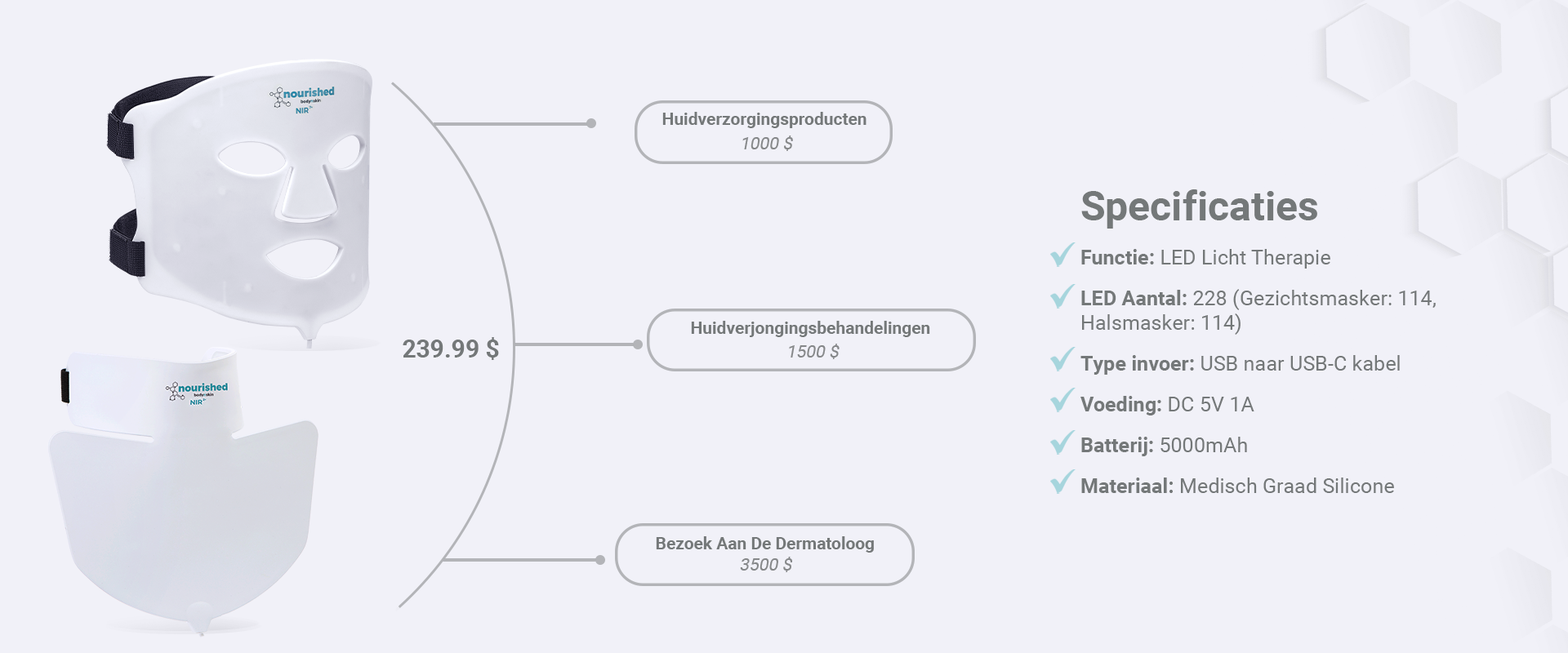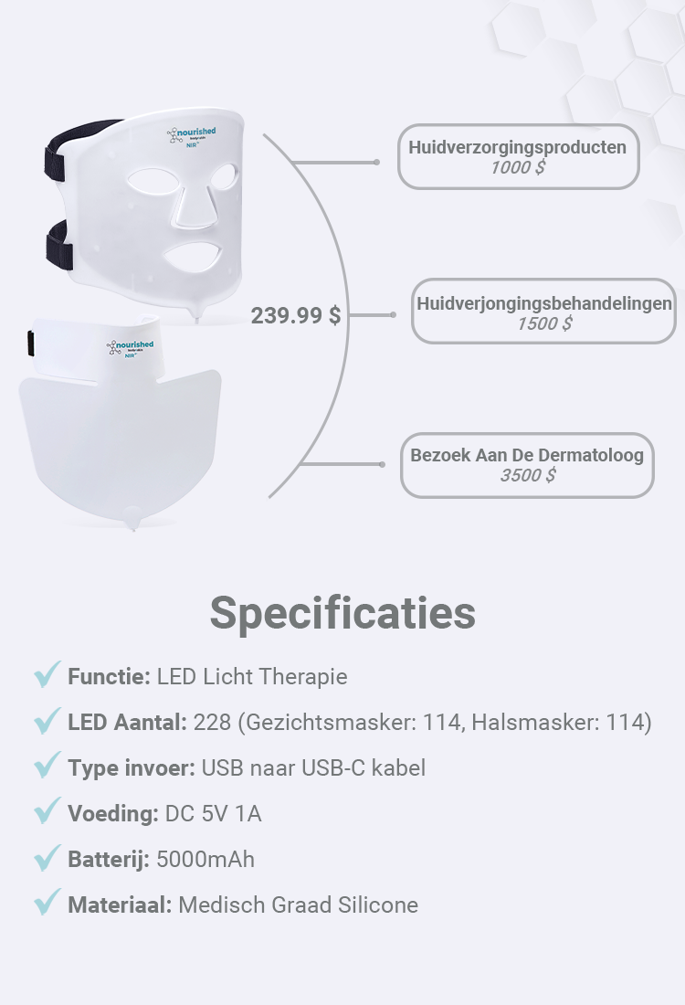 | Aantal LED's: | 228 (Gezichtsmasker:114, Nekmasker: 114) |