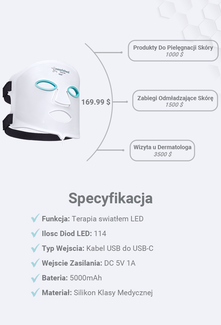 Twój niezawodny partner w pielęgnacji skóry jest już tutaj. Nasza maska na twarz LED z 7 trybami oferuje terapię światłem o pełnym spektrum, teraz jeszcze bardziej skuteczną dzięki technologii bliskiej podczerwieni.