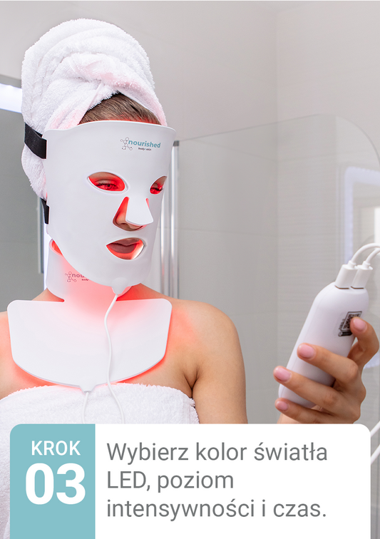 Maski LED Nourished Bodynskin mają wartość natężenia promieniowania około 35 mW/cm², co zapewnia bezpieczne i skuteczne leczenie bez nagrzewania się lub niepożądanych skutków ubocznych. Nasze maski LED są odpowiednie dla wszystkich typów skóry i oferują silne lecznicze działanie terapii światłem LED bez narażenia na promieniowanie UV.