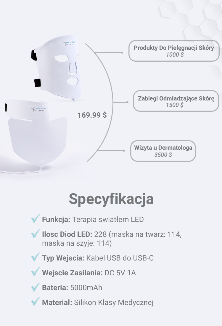 | Ilość LED: | 228 (maska na twarz:114, maska na szyję: 114) |
