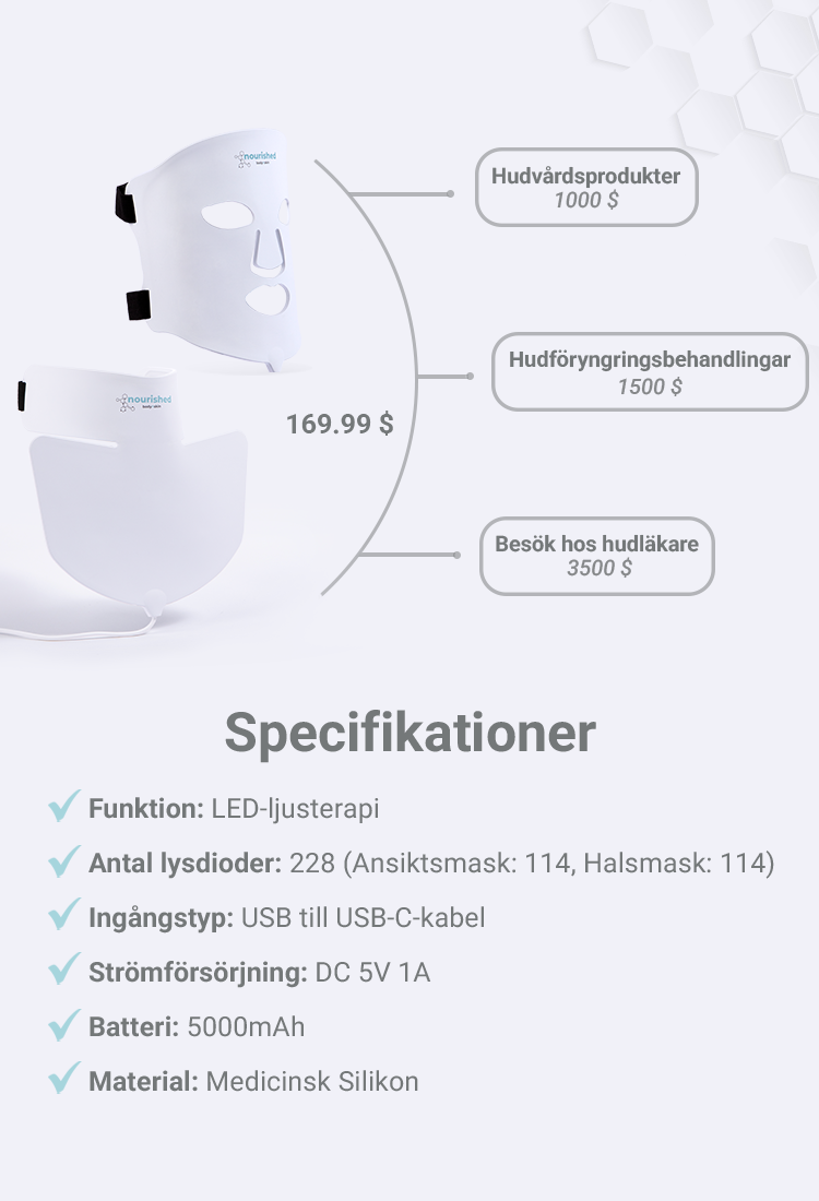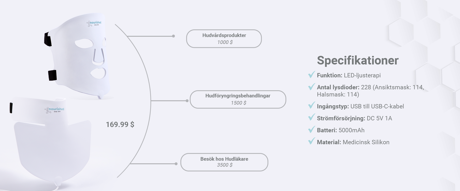 | Antal LED: | 228 (Ansiktsmask:114, Nackmask: 114) |