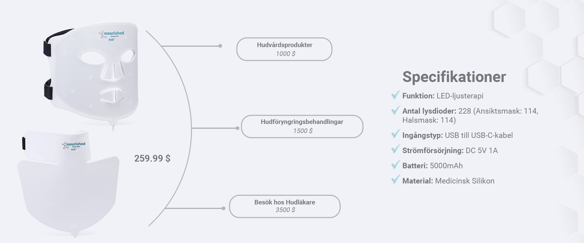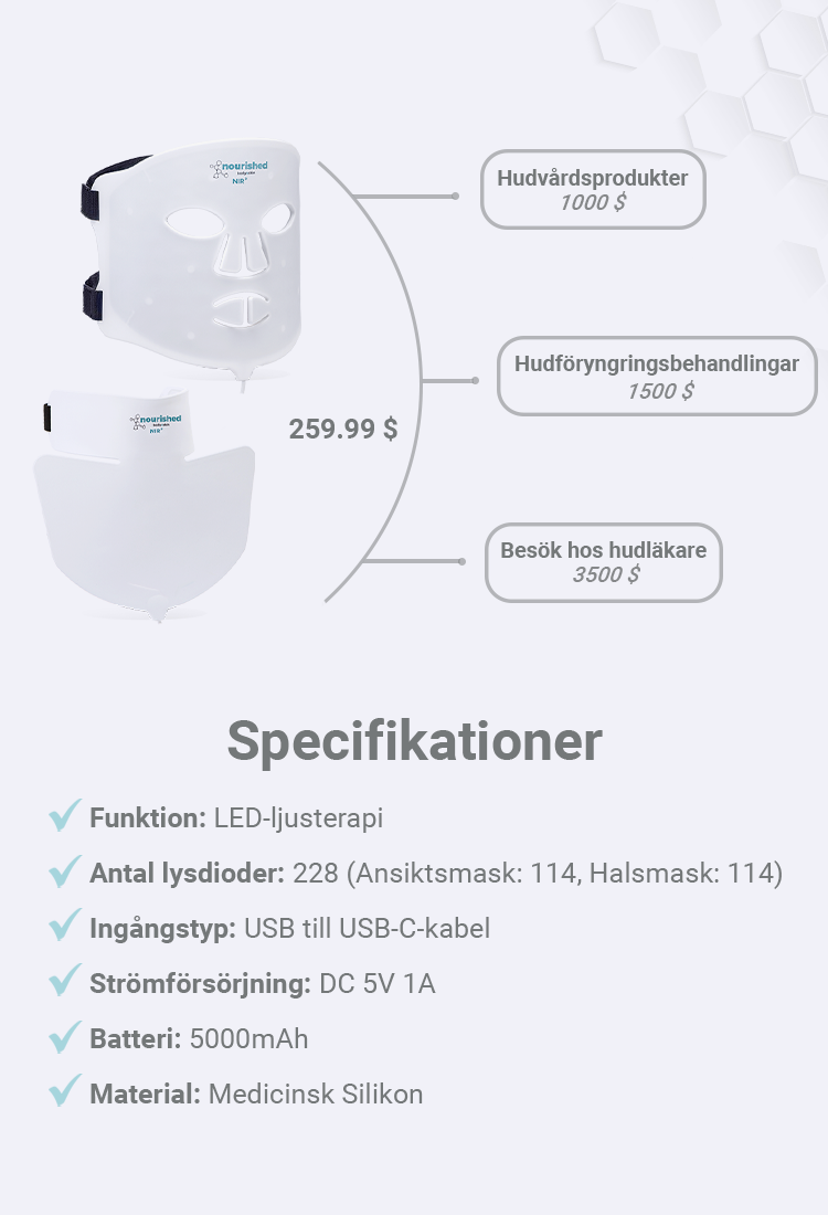 | Antal LED: | 228 (Ansiktsmask: 114, Nackmask: 114) |